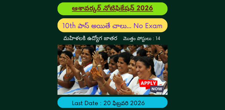 ఆంధ్రప్రదేశ్ రాష్ట్ర ప్రభుత్వ ఆరోగ్య శాఖ ఆధ్వర్యంలోని National Health Mission (NHM) ద్వారా వివిధ జిల్లాల్లో ASHA Worker ఉద్యోగాల భర్తీకి అధికారిక నోటిఫికేషన్ విడుదలైంది. గ్రామీణ మరియు పట్టణ ప్రాంతాల్లో ప్రజలకు ఆరోగ్య సేవలు అందించడమే లక్ష్యంగా ఈ నియామకాలు చేపడుతున్నారు. ఈ ఉద్యోగాలకు రాత పరీక్ష లేకుండా (No Written Exam) నేరుగా ఎంపిక చేస్తారు. కేవలం 10వ తరగతి అర్హత ఉన్న మహిళా అభ్యర్థులు ఈ అవకాశాన్ని వినియోగించుకోవచ్చు. ముఖ్యంగా గ్రామస్థాయిలో నివసించే మహిళలకు ఇది మంచి అవకాశంగా చెప్పుకోవచ్చు. ఆంధ్రప్రదేశ్లో జిల్లా వైద్య ఆరోగ్య శాఖ పరిధిలో ఆశా కార్యకర్తల భర్తీకి ఈ నోటిఫికేషన్ విడుదలైంది. అర్హత కలిగిన అభ్యర్థులు 07-02-2026 నుంచి 20-02-2026 తేదీ లోపు సంబంధిత PHC మెడికల్ ఆఫీసర్ గారికి స్వయంగా (Offline) దరఖాస్తు చేసుకోవాలి.