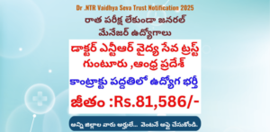 డాక్టర్ NTR వైద్య సేవ ట్రస్ట్ లో రాత పరీక్ష లేకుండా జనరల్ మేనేజర్ ఉద్యోగాల నోటిఫికేషన్ విడుదల… Apply Now| Dr .NTR Vaidhya Seva Trust Notification 2025: Dr .NTR…