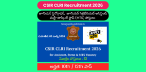 CSIR-సెంట్రల్ లెదర్ రీసెర్చ్ ఇన్స్టిట్యూట్ (CLRI) రిక్రూట్మెంట్ 2026: 13 పోస్టులకు ఆన్లైన్ దరఖాస్తులు ప్రారంభం… ఇలా అప్లై చేసుకోండి? CSIR CLRI రిక్రూట్మెంట్ 2026: CSIR–CLRI సంస్థ 2026 సంవత్సరానికి సంబంధించిన కొత్త…