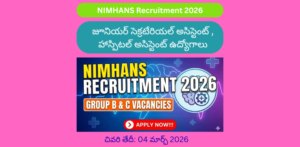 Assistant Jobs : పదవ తరగతి అర్హతతో జూనియర్ సెక్రటేరియల్ అసిస్టెంట్ఉద్యోగ నోటిఫికేషన్ విడుదల…. | NIMHANS Recruitment 2026 Full Details : (NIMHANS) రిక్రూట్మెంట్ 2026: కేంద్ర ప్రభుత్వానికి చెందిన ప్రముఖ…