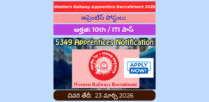 10th , ITI అర్హతతో రాత పరీక్ష లేకుండా వెస్ట్రన్ రైల్వే అప్రెంటిస్ 5,349 పోస్టుల నోటిఫికేషన్ విడుదల | Western Railway Apprentice Recruitment 2026 Apply Now : Western Railway…