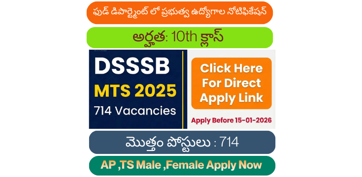 10th క్లాస్ అర్హతతో ఫుడ్ డిపార్ట్మెంట్ లో 714 ప్రభుత్వ ఉద్యోగాలకి నోటిఫికేషన్ విడుదల … వెంటనే అప్లై చేసుకోండి. | DSSSB MTS Notification 2025 : DSSSB MTS Notification 2025 Apply Now : ప్రభుత్వ ఉద్యోగాల కోసం ఎదురుచూస్తున్న అభ్యర్థుల కోసం గుడ్ న్యూస్! ఫుడ్ డిపార్ట్‌మెంట్ లో మొత్తం 714 ఖాళీలు జారీ అయ్యాయి. ఈ ఉద్యోగాలు DSSSB (Delhi Subordinate Services Selection Board) ద్వారా 2025 నోటిఫికేషన్ … Read more
