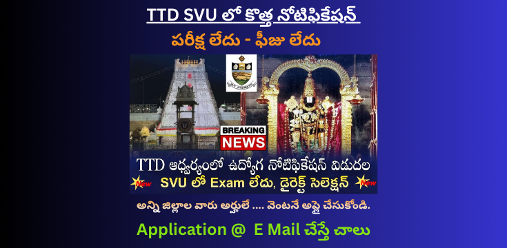 TTD SVU రాత పరీక్ష లేకుండా డైరెక్ట్ జాబ్స్….. E mail చేస్తే చాలు… వెంటనే అప్లై చేసుకోండి | Sri Venkateswara University Recruitment 2025
