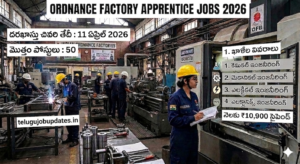 Ordnance Factory Apprentice Jobs 2026: 50 టెక్నీషియన్ అప్రెంటిస్ పోస్టులు – డిప్లొమా అర్హతతో అప్లై చేయండి! Ordnance Factory Apprentice Jobs 2026: నిరుద్యోగ అభ్యర్థులకు మంచి అవకాశం! Ordnance Apprentice…