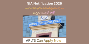 ఇంటర్ అర్హతతో జూనియర్ సెక్రటేరియట్ అసిస్టెంట్స్ నోటిఫికేషన్… వెంటనే అప్లై చేసుకోండి | NIA Notification 2026: NIA Recruitment 2026: ఇంటర్ అర్హతతో కేంద్ర ప్రభుత్వ ఉద్యోగం కోసం ఎదురుచూస్తున్న అభ్యర్థులకు శుభవార్త.…