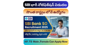 SBI SO Recruitment 2025| 996 పోస్టులకు భారీ నోటిఫికేషన్ విడుదల: SBI SO Recruitment 2025: స్టేట్ బ్యాంక్ ఆఫ్ ఇండియా (SBI) 2025లో స్పెషలిస్ట్ క్యాడర్ ఆఫీసర్ (SCO) పోస్టుల కోసం…