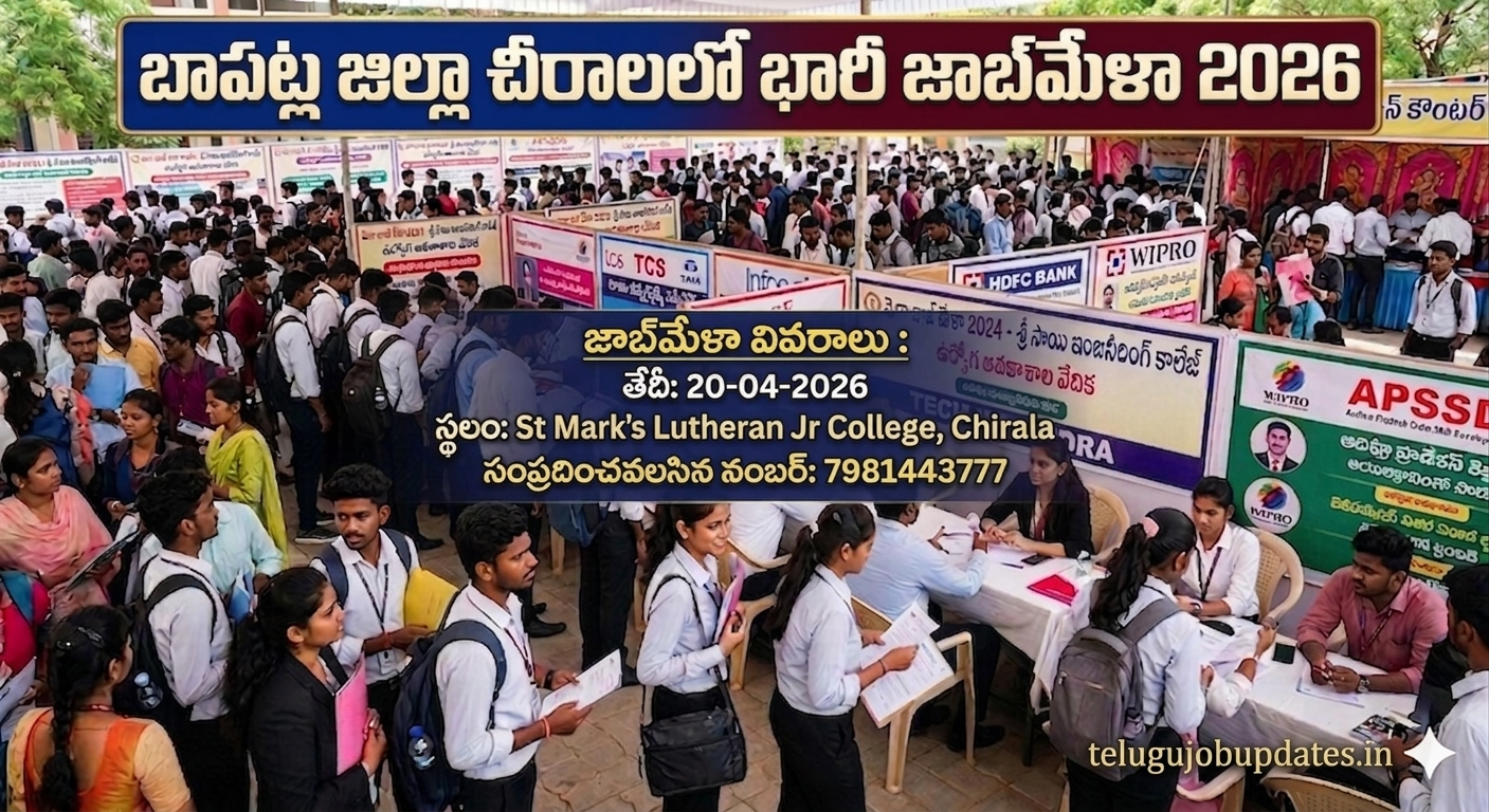 చీరాల పట్టణంలోని చర్చి కాంపౌండ్లో ఉన్న సెయింట్ మార్క్స్ లూథరన్ జూనియర్ కాలేజీలో (St Mark’s Lutheran Jr College) ఏప్రిల్ 20, 2026న ఈ జాబ్మేళా జరగనుంది.
