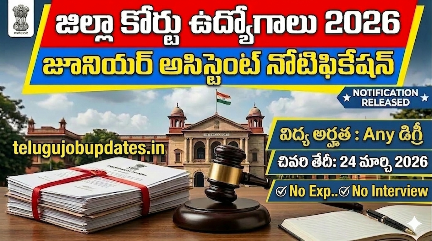 జిల్లా కోర్టులో ఉద్యోగం కోసం ఎదురుచూస్తున్న అభ్యర్థులకు మంచి అవకాశం వచ్చింది. District Legal Services Authority (DLSA) ద్వారా Junior Assistant పోస్టుకు కొత్తగా District Court Jobs 2026 Notification విడుదలైంది. ఈ పోస్టును ప్రత్యక్ష నియామకం (Direct Recruitment) ద్వారా భర్తీ చేయనున్నారు.