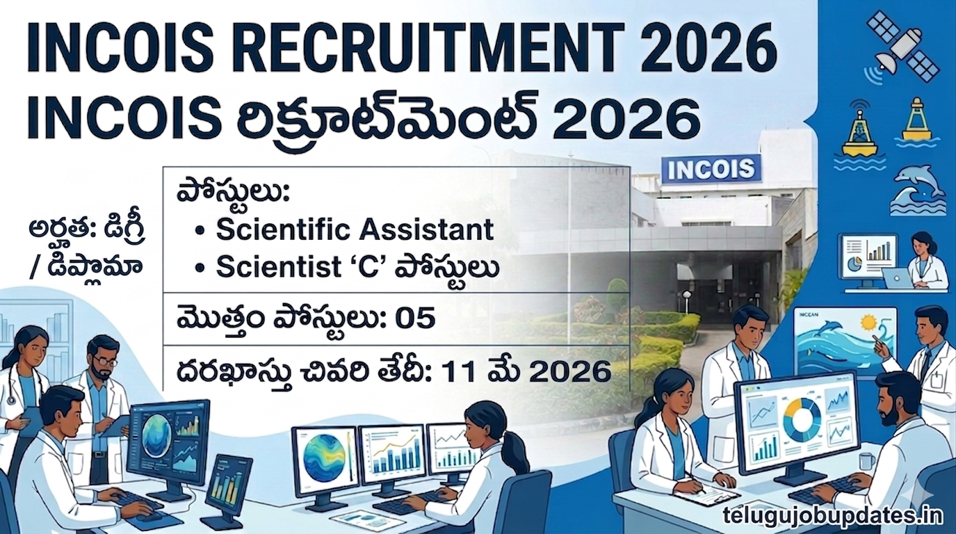 సైన్స్ బ్యాక్‌గ్రౌండ్ ఉన్న అభ్యర్థులకు ఇది ఒక అద్భుతమైన కేంద్ర ప్రభుత్వ ఉద్యోగ అవకాశం. హైదరాబాద్‌లో ఉన్న INCOIS సంస్థ సైంటిఫిక్ అసిస్టెంట్ మరియు సైంటిస్ట్ పోస్టుల భర్తీకి నోటిఫికేషన్ విడుదల చేసింది. డిగ్రీ లేదా డిప్లొమా పూర్తి చేసిన వారు ఈ అవకాశాన్ని ఉపయోగించుకోవచ్చు. ముఖ్యంగా ఈ రిక్రూట్మెంట్‌లో అప్లికేషన్ ఫీజు లేకపోవడం పెద్ద ప్లస్ పాయింట్.