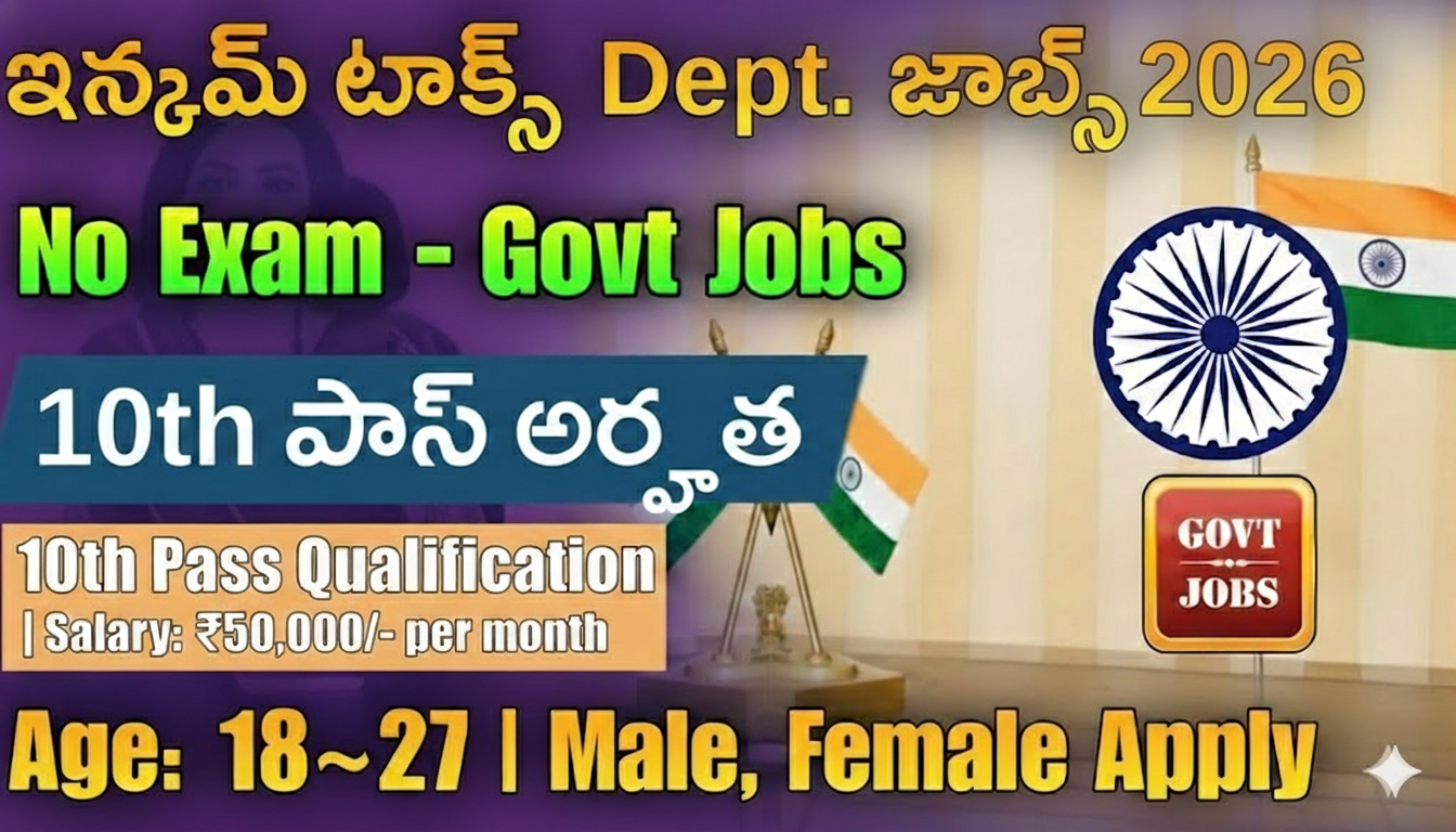 పరీక్ష లేకుండా 10వ తరగతి అర్హతతో ఇన్కమ్ టాక్స్ డిపార్ట్మెంట్ లో Govt జాబ్స్ విడుదల | Income Tax Dept. Notification 2026 Apply Now :