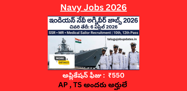 నిరుద్యోగ యువతకు భారీ శుభవార్త. భారత నౌకాదళం 2026–27 సంవత్సరానికి సంబంధించిన Agniveer SSR, MR మరియు Medical Sailor పోస్టుల కోసం కొత్త నోటిఫికేషన్ విడుదల చేసింది. ఈ ఉద్యోగాలకు దేశవ్యాప్తంగా అర్హత కలిగిన అభ్యర్థుల నుంచి ఆన్లైన్ ద్వారా దరఖాస్తులు ఆహ్వానిస్తున్నారు. అర్హత ఉన్న అభ్యర్థులు అధికారిక వెబ్సైట్ Indian Navy ను సందర్శించి అప్లై చేయాలి. ఈ రిక్రూట్మెంట్ ద్వారా నేవీలో సేవ చేసే మంచి అవకాశం లభిస్తుంది. మరిన్ని పూర్తి వివరాలు ఇప్పుడు చూద్దాం.