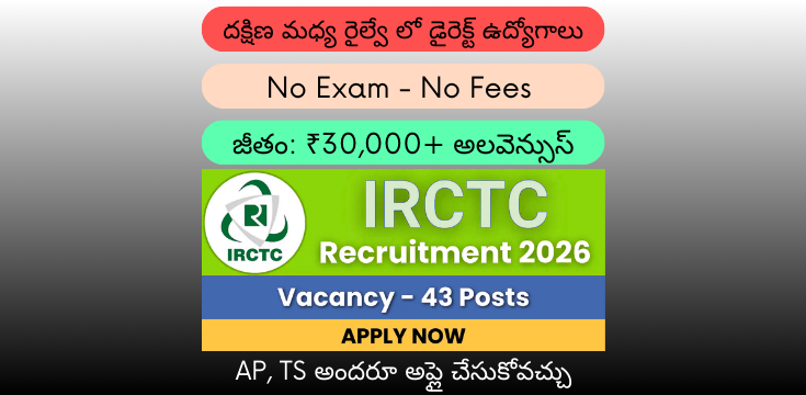 పరీక్ష , ఫీజు లేకుండా దక్షిణ మధ్య రైల్వే లో డైరెక్ట్ ఉద్యోగాల నోటిఫికేషన్ విడుదల | IRCTC South Central Zone Jobs Notification 2026 Apply Now :