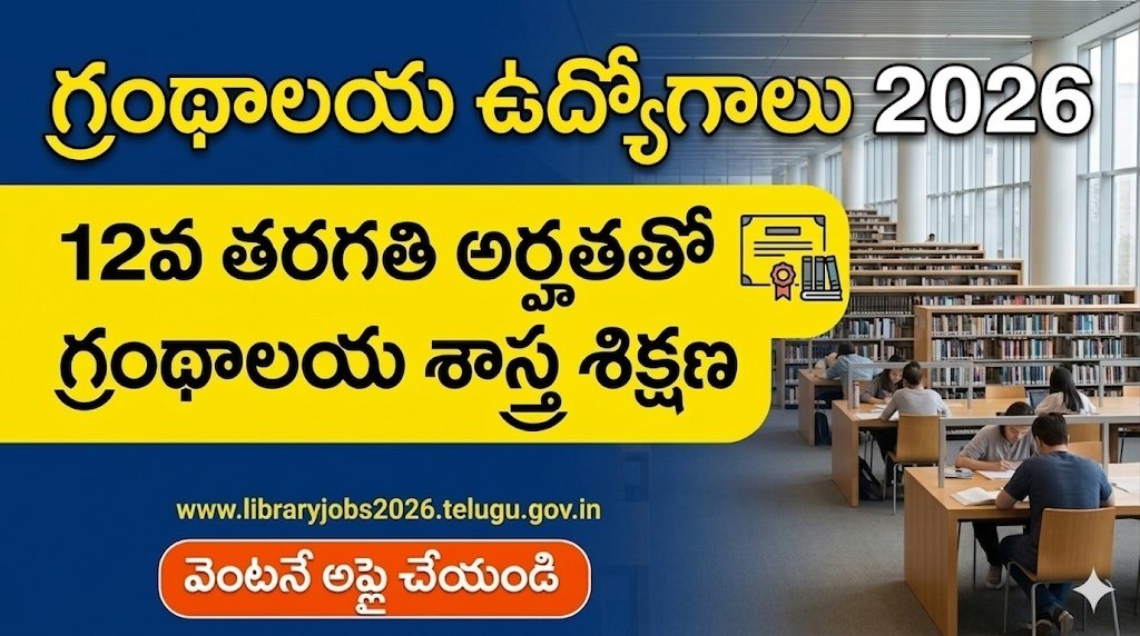Library Jobs 2026: 12వ తరగతి అర్హతతో గ్రంథాలయ శాస్త్ర శిక్షణ – వెంటనే అప్లై చేయండి.