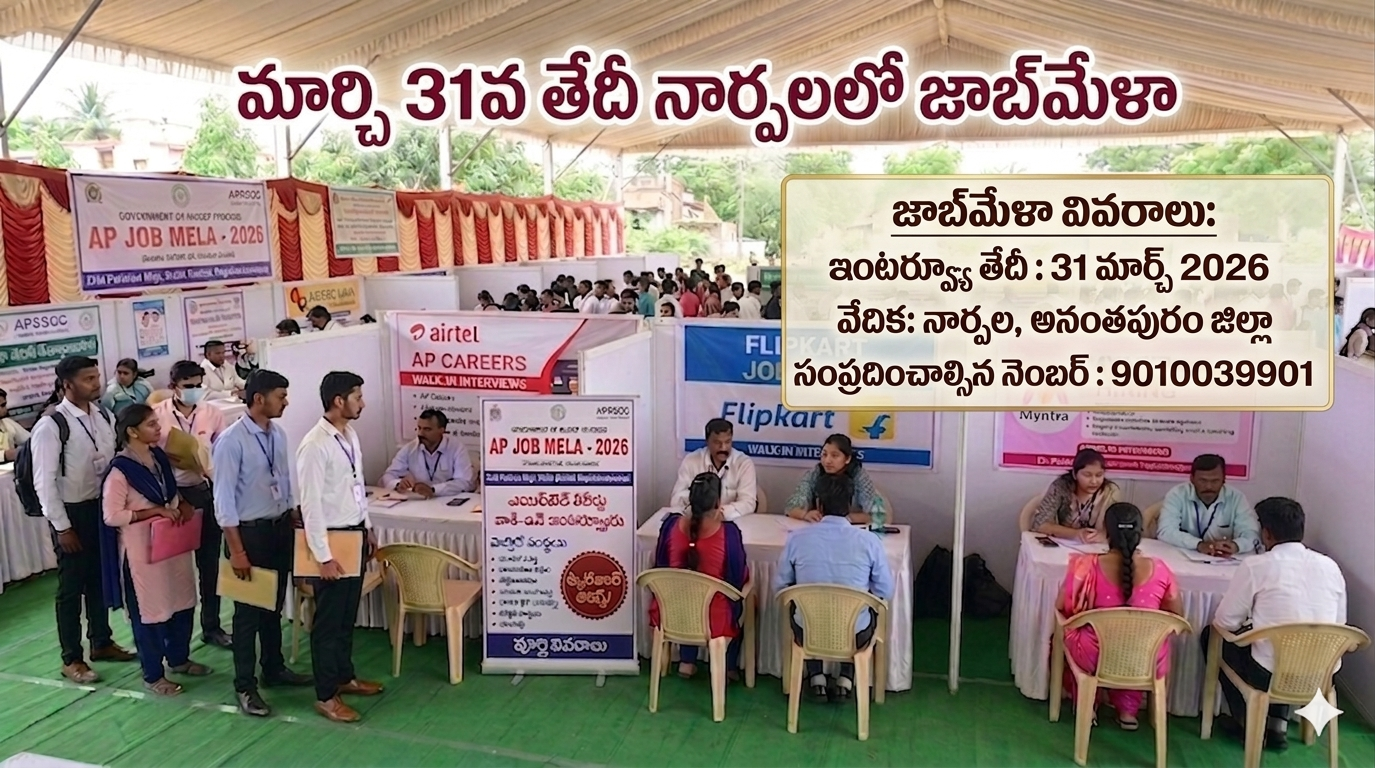 మార్చి 31వ తేదీ నార్పలలో జాబ్మేళా | నిరుద్యోగులకు సువర్ణావకాశం… పూర్తి వివరాలు :