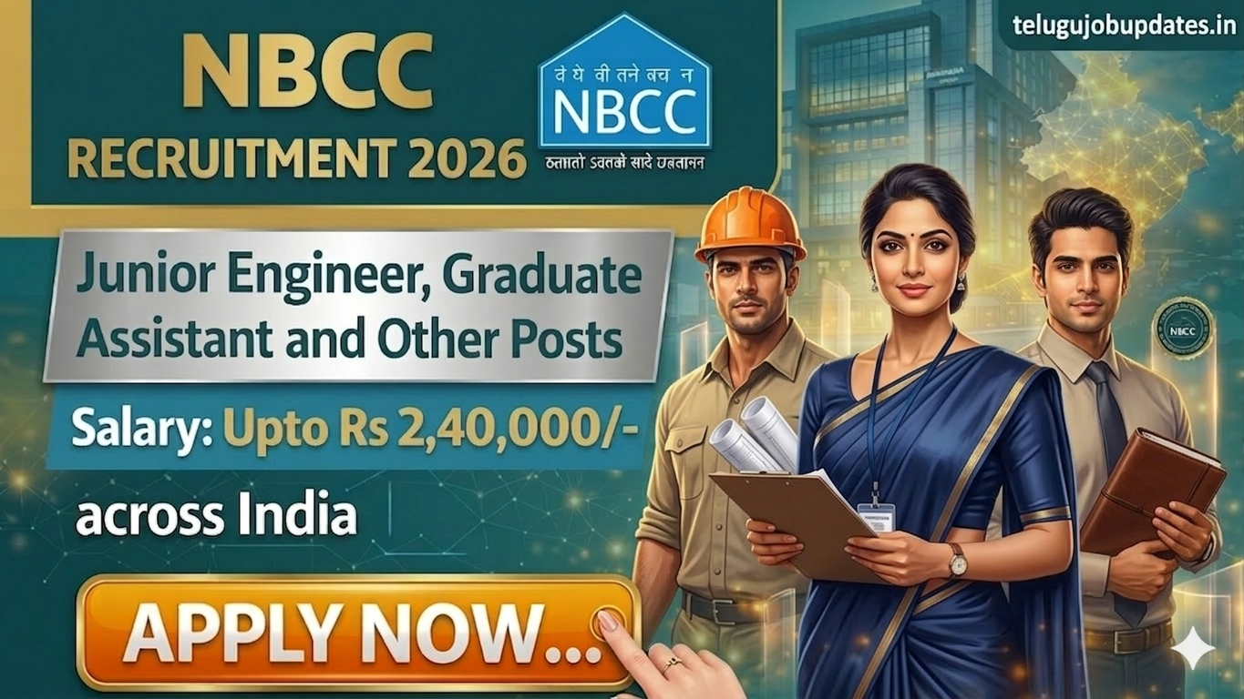 ప్రభుత్వ రంగంలో స్థిరమైన ఉద్యోగం కోసం చూస్తున్న అభ్యర్థులకు ఇది అద్భుతమైన అవకాశం. NBCC (India) Limited సంస్థ 2026 సంవత్సరానికి సంబంధించిన కొత్త నోటిఫికేషన్‌ను విడుదల చేసి మొత్తం 59 పోస్టులను భర్తీ చేయనుంది. జూనియర్ ఇంజినీర్ నుండి జనరల్ మేనేజర్ వరకు వివిధ స్థాయిలలో అవకాశాలు అందుబాటులో ఉన్నాయి.