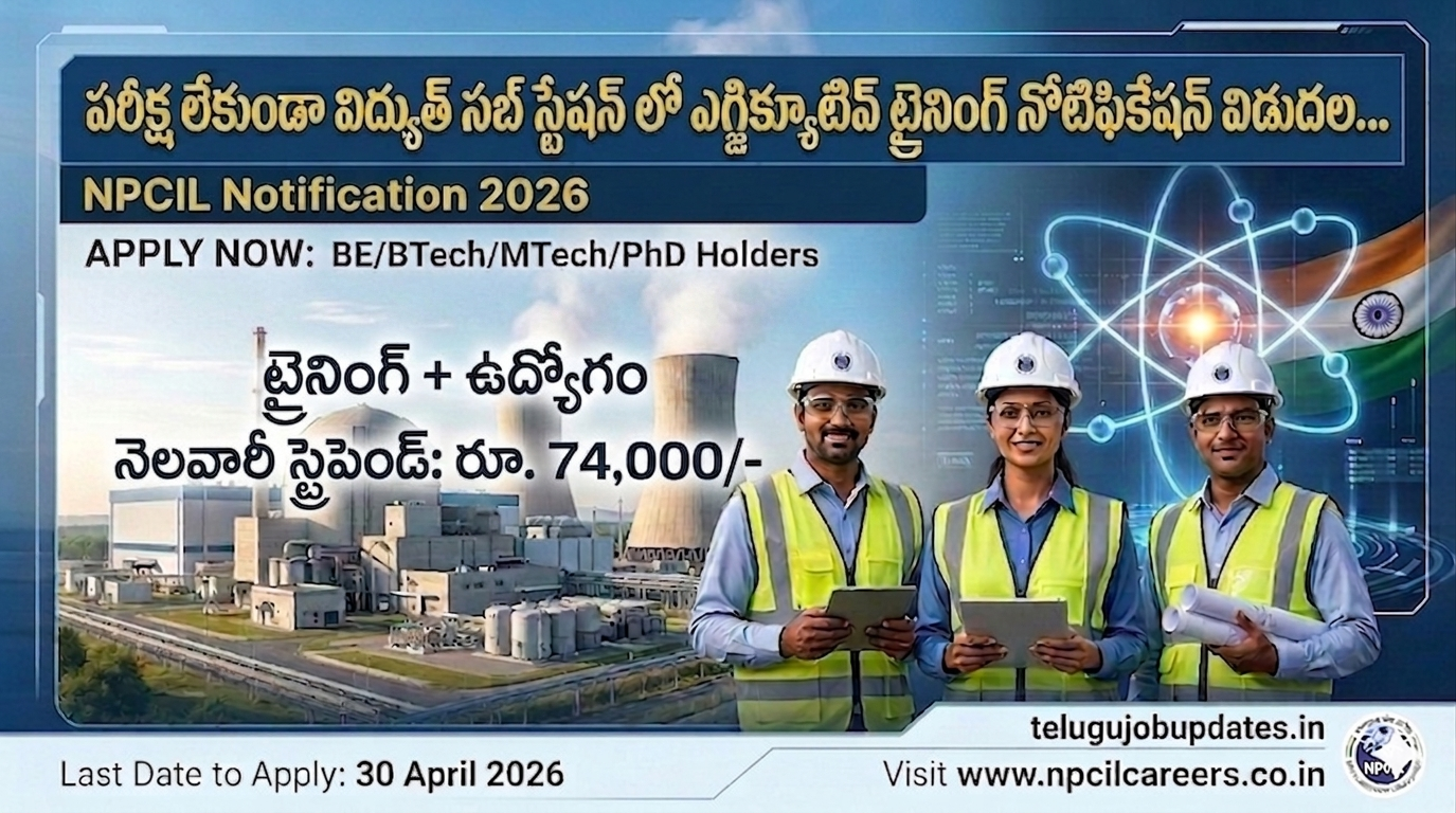 పరీక్ష లేకుండా విద్యుత్ సబ్ స్టేషన్ లో ఎగ్జిక్యూటివ్ ట్రైనింగ్ నోటిఫికేషన్ విడుదల… ఇలా అప్లై చేసుకోండి. | NPCIL Notification 2026 Apply Now :