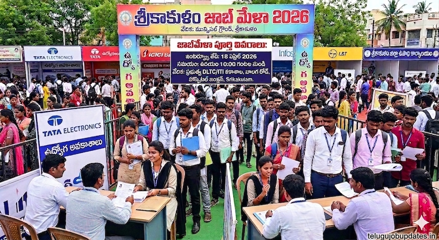 నిరుద్యోగ యువతకు ఇది ఒక అద్భుతమైన అవకాశం. ఉద్యోగాల కోసం ఎదురుచూస్తున్న అభ్యర్థులకు శ్రీకాకుళం జాబ్ మేళా 2026 గొప్ప అవకాశాన్ని అందిస్తోంది. ఈ జాబ్మేళా ద్వారా ప్రముఖ ప్రైవేట్ సంస్థల్లో నేరుగా ఇంటర్వ్యూల ద్వారా ఉద్యోగం పొందే అవకాశం ఉంది. ఏప్రిల్ 18, 2026న నిర్వహించబడే శ్రీకాకుళం జాబ్ మేళా 2026 నిరుద్యోగులకు కెరీర్లో మంచి ప్రారంభం అవుతుంది. ప్రస్తుతం ప్రైవేట్ రంగంలో ఉద్యోగ అవకాశాలు పెరుగుతున్న నేపథ్యంలో ఈ జాబ్మేళా మరింత ప్రాధాన్యం సంతరించుకుంది.