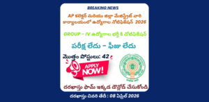 రాత పరీక్ష , ఫీజు లేకుండా కలెక్టర్ మరియు జిల్లా మేజిస్ట్రేట్ వారి కార్యాలయంలో ఉద్యోగాల నోటిఫికేషన్ 2026 – 42 బ్యాక్లాగ్ పోస్టులు..వెంటనే అప్లై చేసుకోండి. AP Collector Office Jobs 2026…
